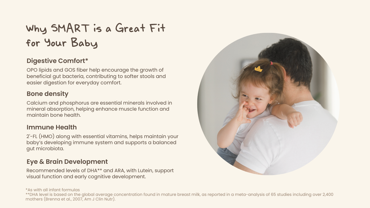 - DHA, ARA, and lutein to help nourish normal visual and cognitive development